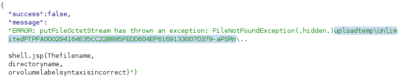 By replacing the sid parameter with dot-dot-slash sequences, we were able to upload a server-side executable, shell.jsp, to a location outside the uploadtemp directory. For anyone skim-reading up until this point, it’s very important not to attempt to upload files to the top-level directory as this risks deleting the entire application.