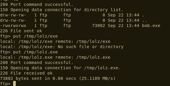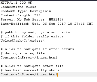 Anonymous FTP access was enabled, so we were able to simply log in and upload an executable. At this stage we could upload files to the target system and run binaries. The only thing missing was that we don’t know the full path to the binary that we’d uploaded. Fortunately, there was a text file in the cgi-bin detailing the upload configuration: