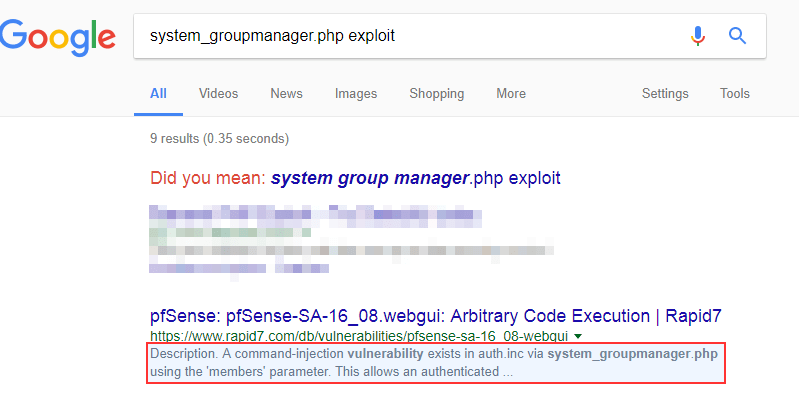 This challenge was based on a vulnerability discovered by Scott White (@s4squatch) shortly before DerbyCon 2017. It wasn’t quite a 0day (Scott had reported it to pfSense and it was vaguely mentioned in the patch notes) but there was very limited public information about this at the time of the CTF.