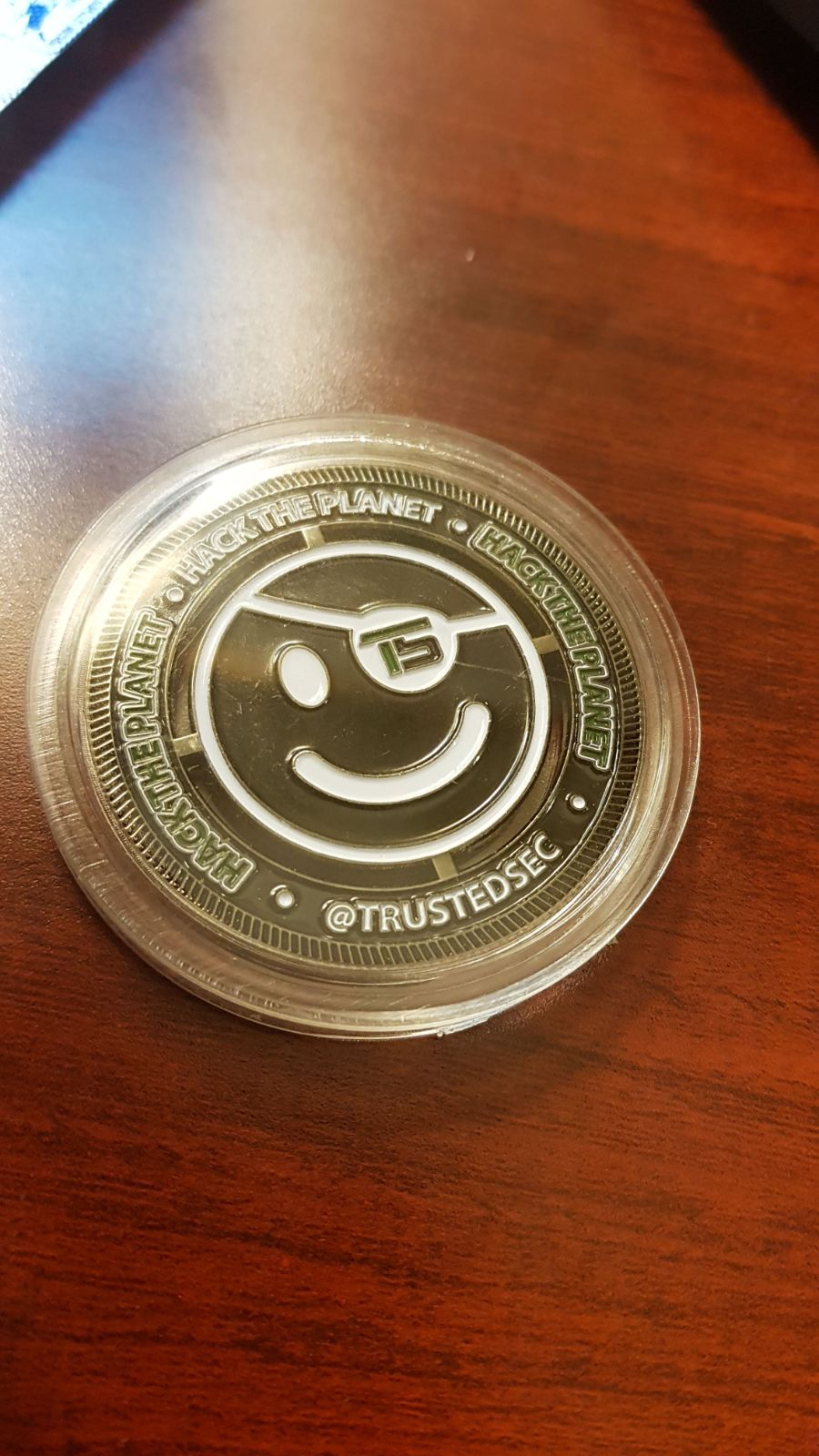 And with that, we obtained 5000 points, along with the first of two TrustedSec challenge coins awarded to our team.