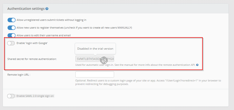 Looking in our local version, we noticed that you can’t change the shared secret in the trial. Was it is same between versions?