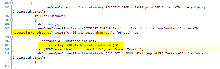 At this point we began looking into the how the URL was generated and located the function GetAutoLoginUrl() which was within the HelpDesk.BusinessLayer.VariousUtils class. The source of this is shown below.