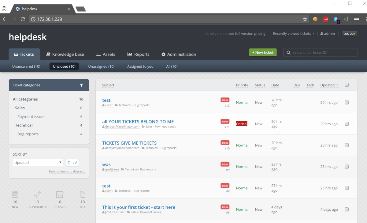 The KB article leaked the username and email address of the admin user. Interesting, although it was possible to obtain the email address from the sender and, well, the username was admin…