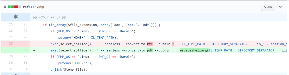Looking at the diff of changes for the “escape shell arguments” change we can see that this change was to call escapeshellargs() on two parameters that are passed to the exec() function (http://php.net/manual/en/function.exec.php).
