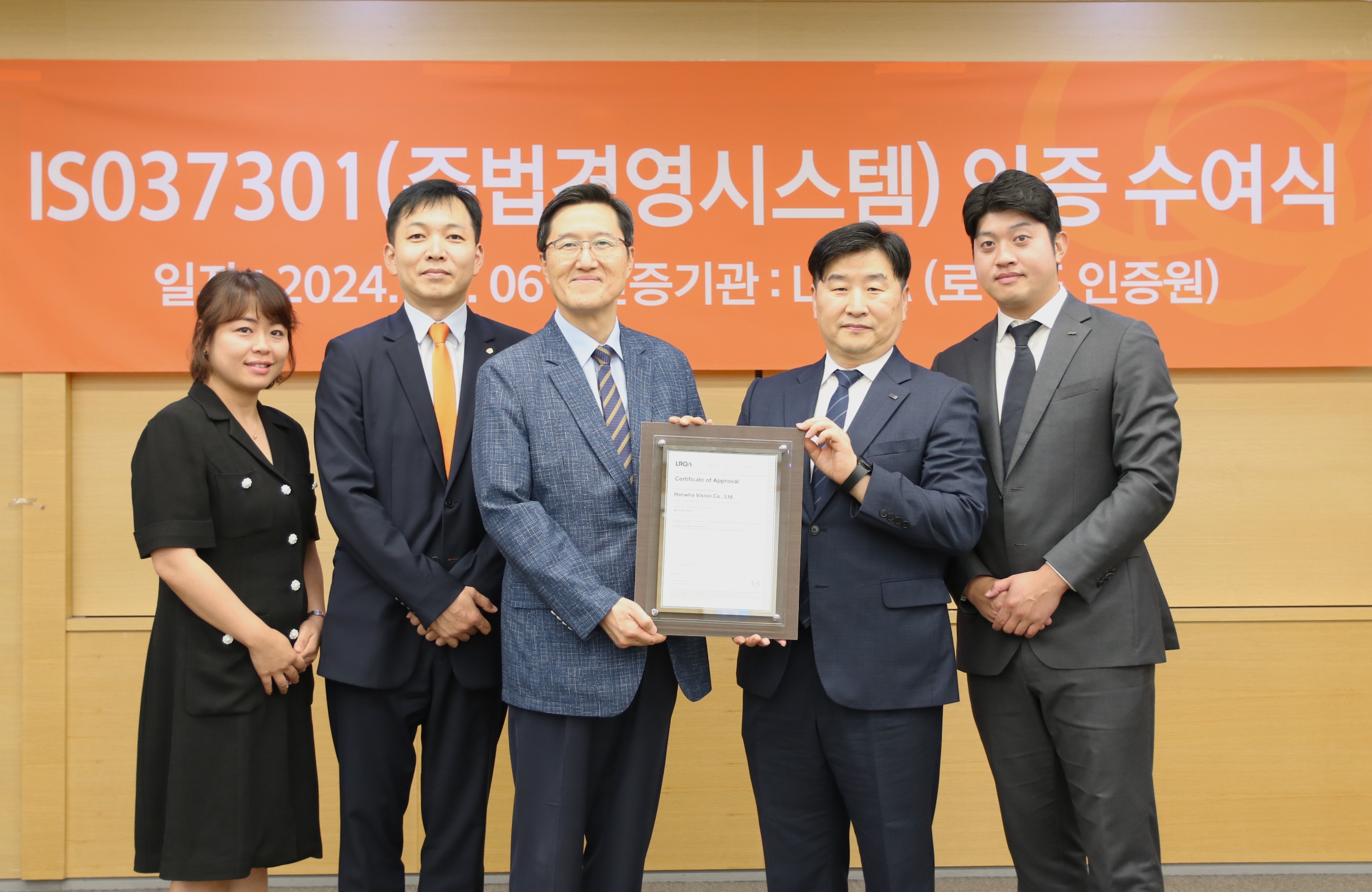2024년 9월 6일 한화비전 준법경영시스템 ISO 37301 인증 취득을 축하하는 인증수여식이  진행되었습니다.