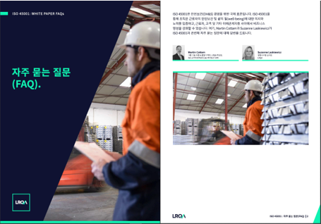 여기 LRQA의 ISO 45001 기술 전문가인 Martin Cottam 와 Suzanne Laskiewicz가 ISO 45001 과 관련해 자주 묻는 질문에 대한 답변을 드립니다.